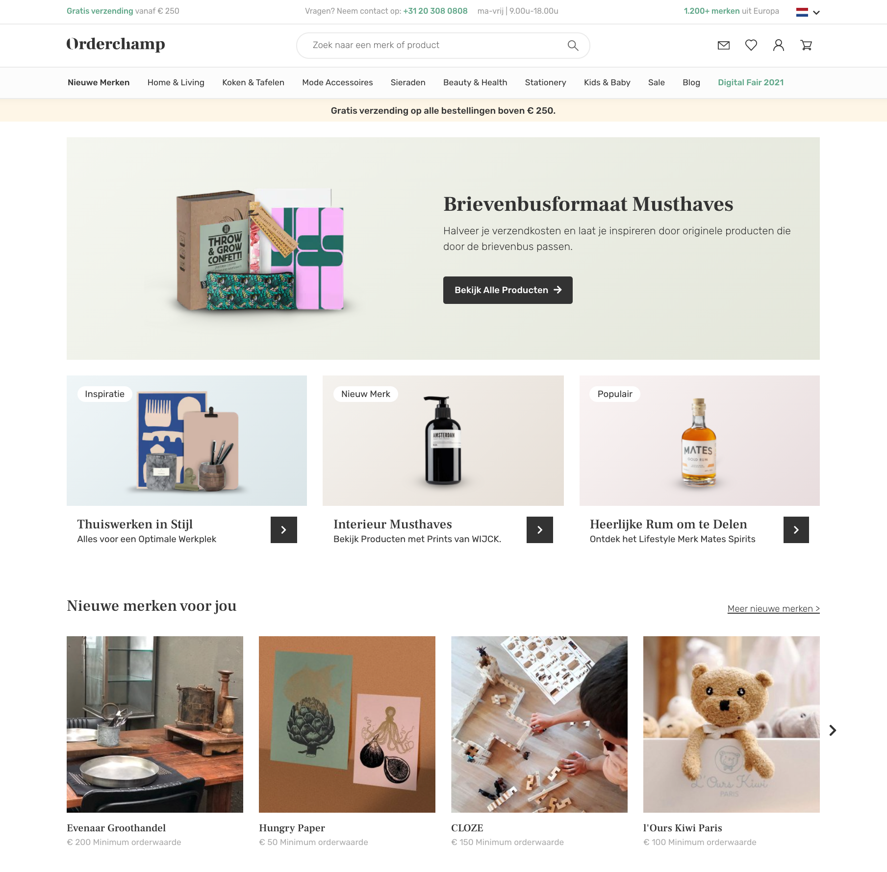 Orderchamp is een inkoopplatform waar inspirerende merken en retailers samenkomen. Sinds de officiële lancering in september 2019 heeft het platform meer dan 25.000 retailers en 1.200 merken aangesloten binnen de categorieën Home & Living, Mode Accessoires, Sieraden, Beauty & Health, Stationery, Kids & Baby en Koken & Tafelen.